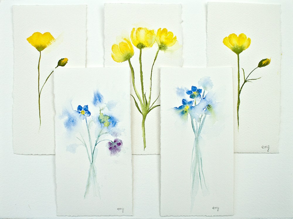 I used Daniel Smith’s Cobalt Blue for the Forget-Me-Nots, plus a little Cobalt Violet Deep and some Hansa Yellow Medium. Just quick loose studies, trying to capture the essence of the flowers rather than detailed botanical studies.