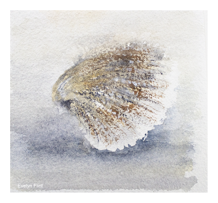 Above a little cockle shell sketch. Colours used were Buff Titanium, Flint Grey, and Transparent Sienna. The paper used was Baohong Cold Pressed, 140 lb. The lovely texture of this paper is great for helping create the texture of these shells. Negative painting and some dry brush work were some of the techniques I used.