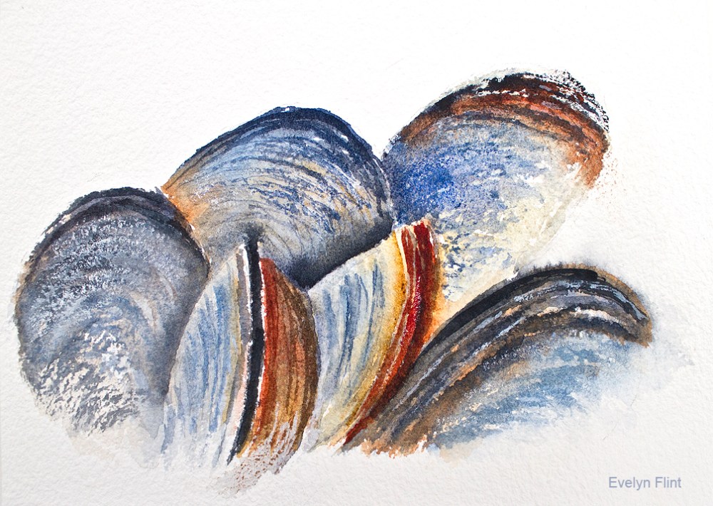 The mussel shells above was a little practice sketch, using one of my own photos for reference. I was testing out colours and creating textures using Baohong Cold Pressed paper and dry brush work. The colours I used were: Ultramarine Blue, Indanthrone Blue, Jane’s Grey, Transparent Sienna, Transparent Ochre and Permanent Alizarin Crimson. I’m going to do more sketches like the one above, applying the lessons I’ve learnt.