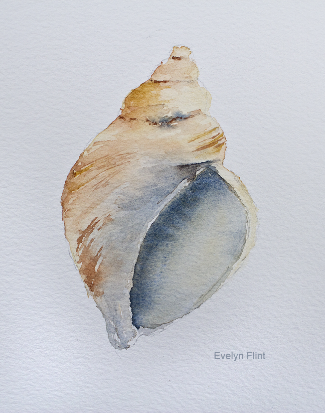 Above are a couple of whelk watercolour sketches. The one on the left slightly more detailed, painted on Daler Rowney Langton Prestige watercolour paper; the one on the right painted more loosely on Canson Moulin du Roy watercolour paper.