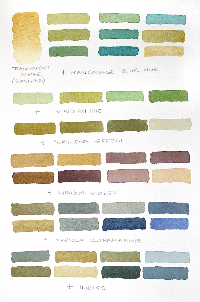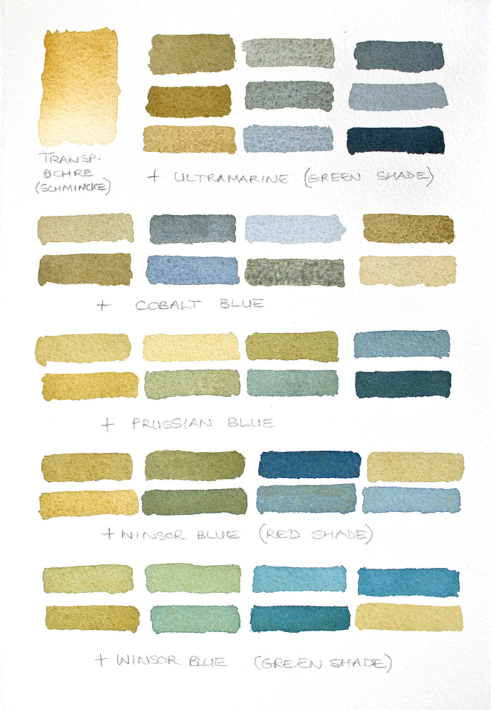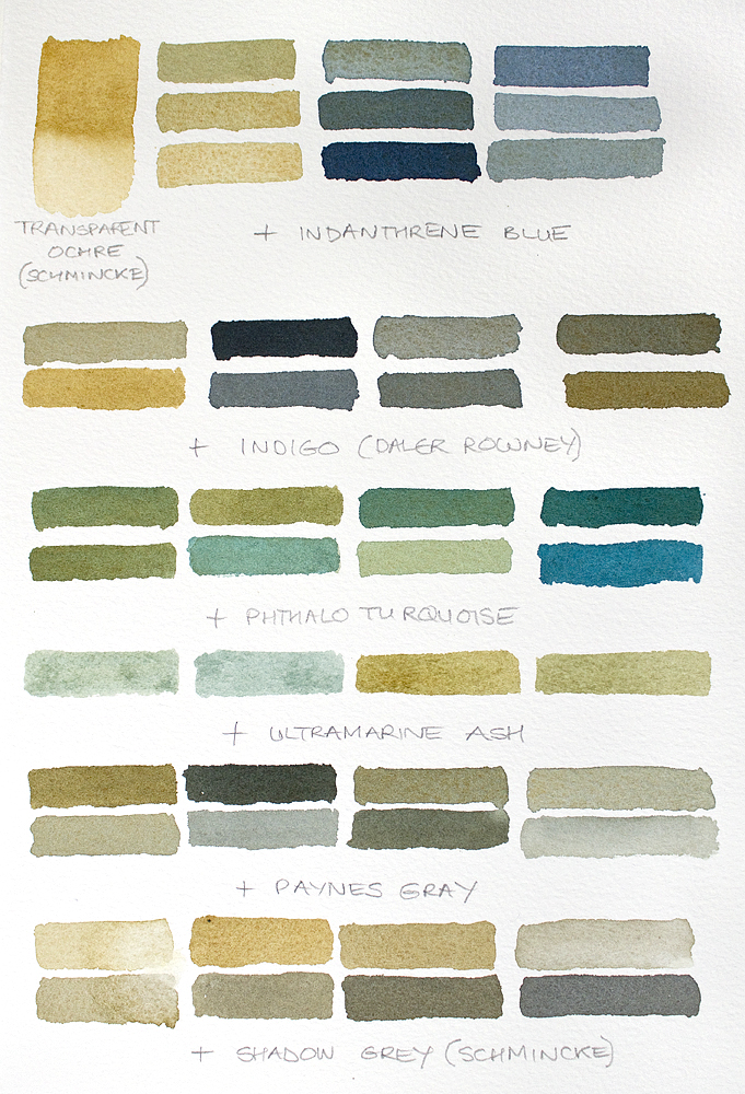 Above and below, I’ve been mixing Schmincke’s Transparent Ochre with colours from my palette. The result are some beautiful beach colours, based on what I see around our beautiful UK coastline. All colours are Winsor & Newton Professional watercolours unless otherwise stated…