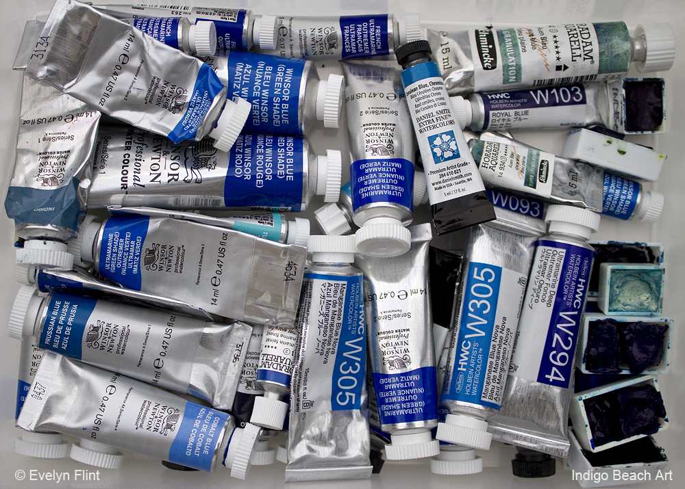 Blues and earth colours dominate my watercolour collection. Why do they dominate? I can only assume that it reflects my love of the ocean, the coast, the beach and the sea shore.