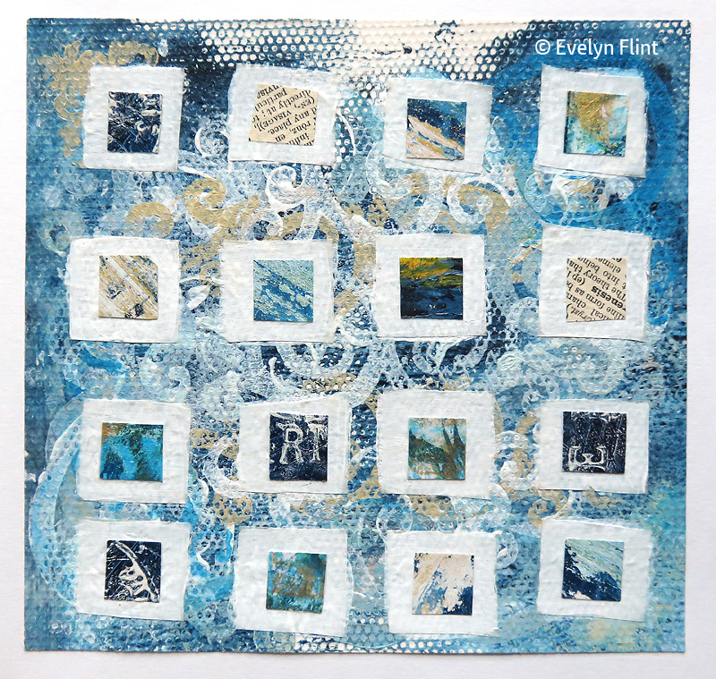 The project explored the techniques in this book to create wonderful textures, patterns and effects on a blank art surface. I learnt so much from this project and used many different mediums that I probably would not have tried otherwise. Below is just a small selection of my work created in this project.